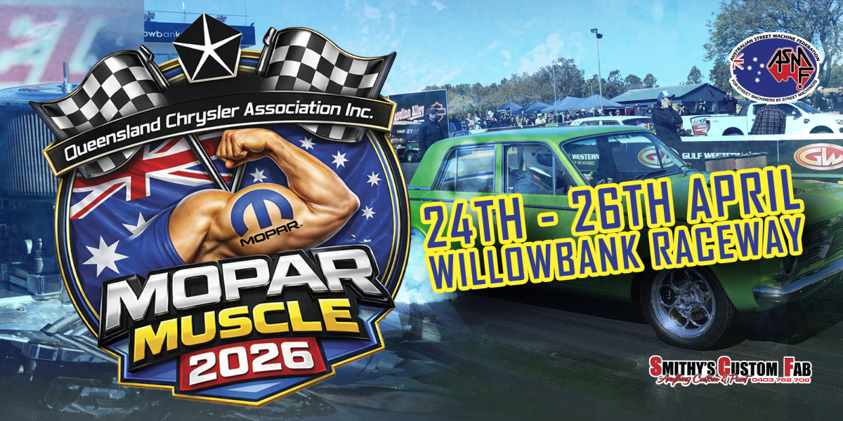 Queensland Chrysler Association’s Mopar Muscle rolls into Willowbank Raceway from April 24–26, bringing three days of Pentastar pride, cruising, racing, and good times.